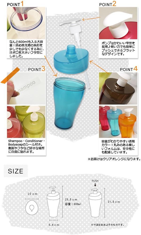 溶液を入れる口が大きく、上部がフタ型のディスペンサーです。面倒な詰め替えも簡単におこなえます。あまることなく移し替えができるよう、容量は少し大きめの600mlです。 |