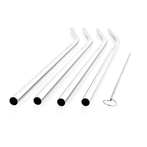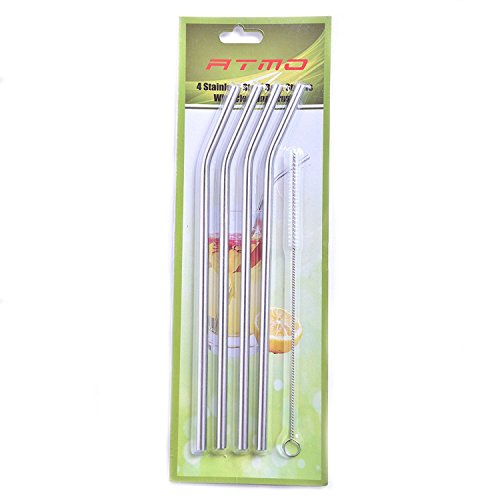 ATMO Stainless Steel Premium Drinking Straws, Reusable, BPA Free and Eco-Friendly, Set of 4 Extra Long with Free Cleaning Brush