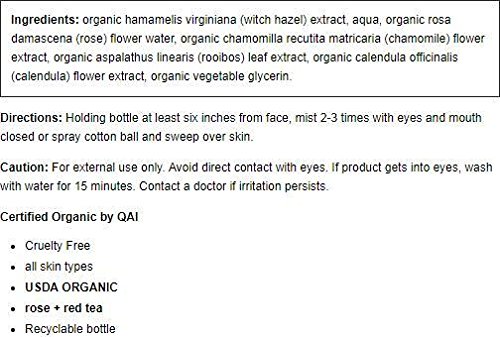 Restore healthy moisture and oil balance without drying the skin. This certified organic toner utilizes organic witch hazel to purify, organic plant glycerin to moisturize and organic rose and rooibos (red tea) to soothe, calm and restore the skin’s natural acid mantle–the skin’s own protective layer. Great for dry, oil-rich and sensitive skin alike, so get toned! For external use only. Avoid contact with eyes. If any adverse reaction develops, stop use and contact your physician.Feature