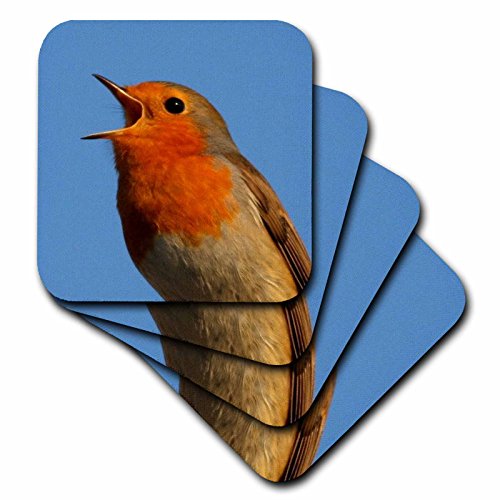 3dRose cst_46947_1 A Little Bird Told Me European Robin, Erithacus Rubecula, Robin, Robin Redbreast, Bird, Birds Soft Coasters, (Set of 4)