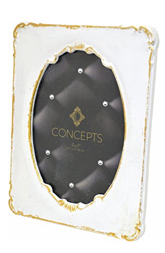 Concepts White Resin Picture Frame Round Opening With Gold Trim 5"x7"