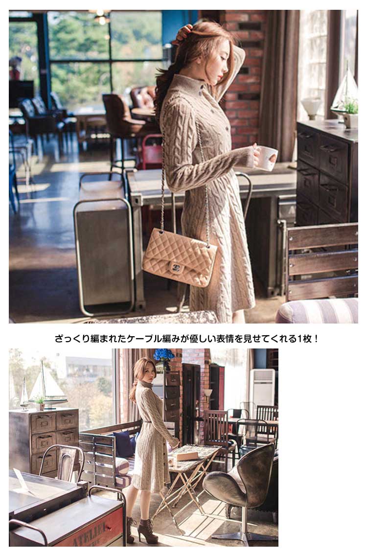 | 大人可愛いケーブルニットロング丈カーディガンが登場!オトナカワイイベーシックなケーブルニットワンピースです。ざっくり編まれたケーブル編みが優しい表情を見せてくれる1枚!程よくフィットする形などオトナ見せデザインに!ベルトウエストマークでしっかりメリハリあるボディラインを演出◎ロング丈デザインで気になるヒップ周りもカバーしてくれます!選べる3カラーの4サイズ展開も嬉しい! | |