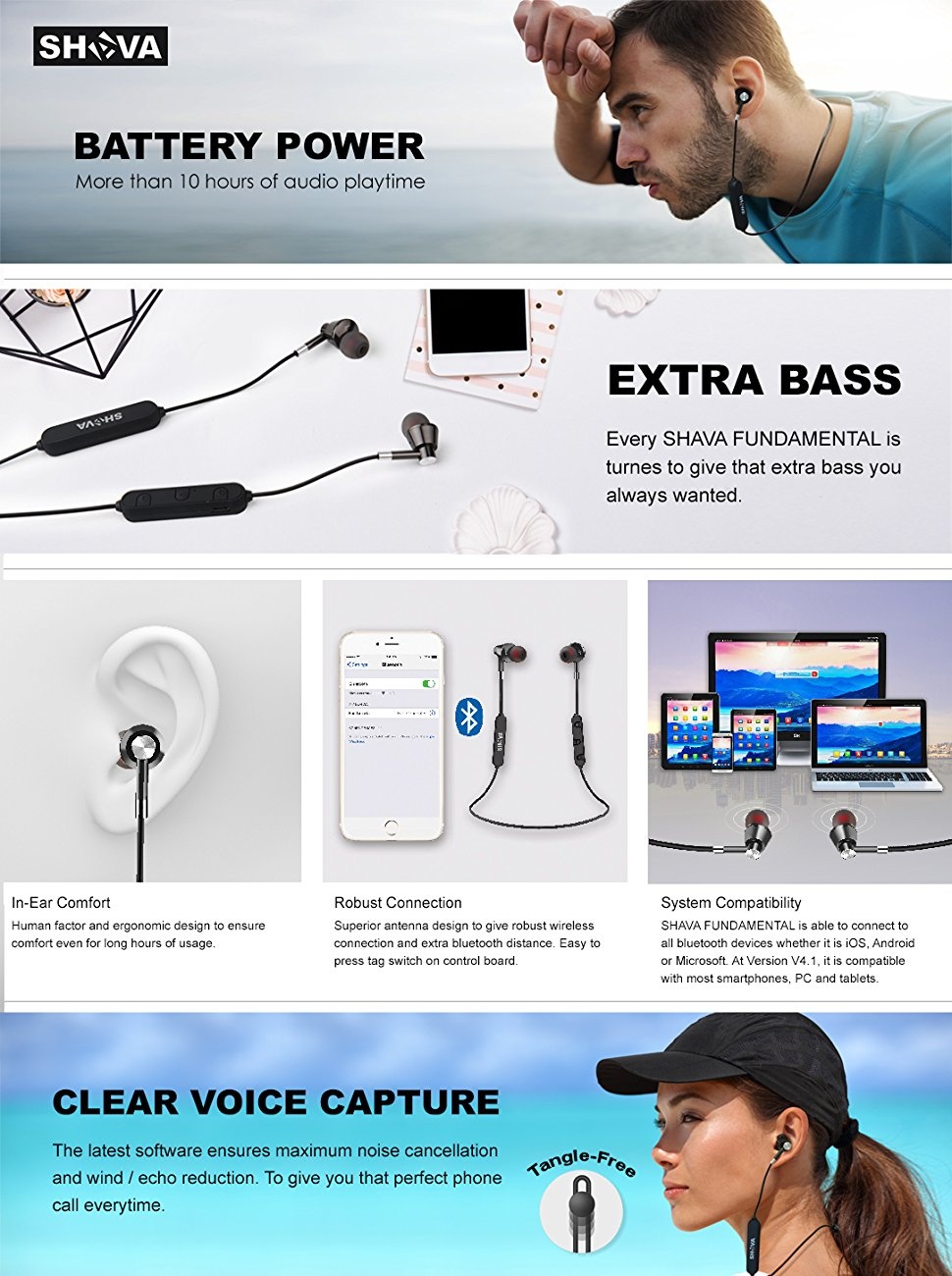 - IN-EAR COMFORT => With the ergonomic design based on statistics of huge database, we are able to design a very comfortable earbud which feels natural in your ears for a long period of time. The weight of Fundamental headset is also well distributed so that it can be around our neck area without discomfort