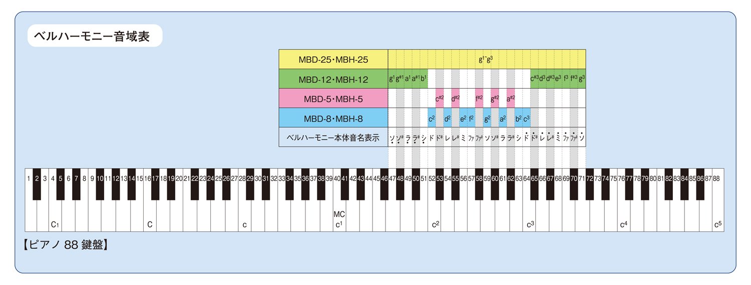 Bell Harmony · Hand type It will be 1 octave trunk sound 8 tone which becomes the center of 2 octaves in all the range.