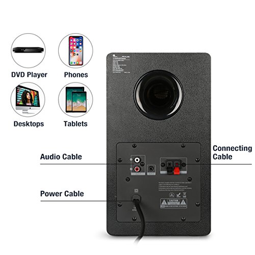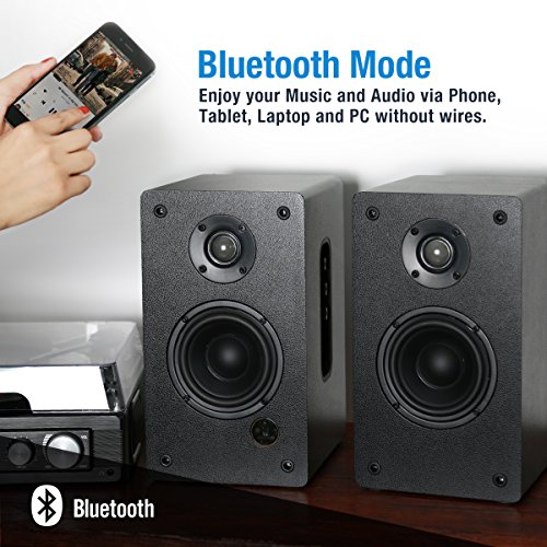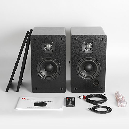 -. Binding : Electronics -. Brand : 1byone -. Color : black -. EAN : 6970323136288 -. Feature : High-Quality Sound - A 4'' Woofer and 1'' Teeter with 2 x 30W power output for perfect sound reproduction. / Connect Two Devices - Connect through the 3.5mm headphone jack or dual RCA port at the same time, with no need to switch or re-plug. / Bluetooth - Wirelessly connect with your smartphone, tablet, laptop, and other Bluetooth-enabled devices. / Compact Remote Control - Conveniently access volume, mode, mute/unmute, and playback controls. / Automatically Power Off - The speaker system automatically powers off after 30 minutes of inactivity. -. Label : 1byone -. Manufacturer : 1byone -. Model : 436NA-0005 -. MPN : 436NA-0005 -. PackageQuantity : 1 -. PartNumber : 436NA-0005 -. ProductGroup : Speakers -. ProductTypeName : SPEAKERS -. Publisher : 1byone -. Studio : 1byone -. Title : 1byone Powered Bluetooth Classic Bookshelf Speaker with 4’’ Woofer and 1’’ Tweeter, 2X30W RMS(Black, Pair)