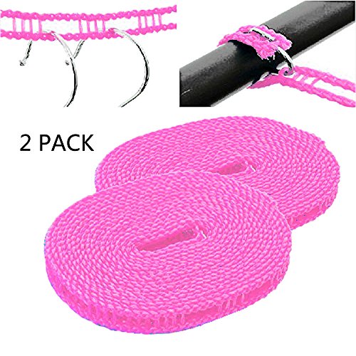 [2 Pack]5m Portable Windproof Clothesline, Ably adjustable clothesline for Outdoor Indoor Home Camping Travel Drying (Pink)