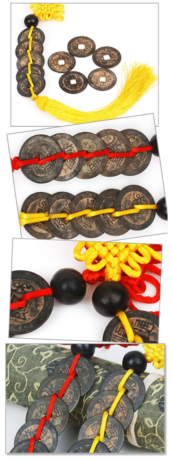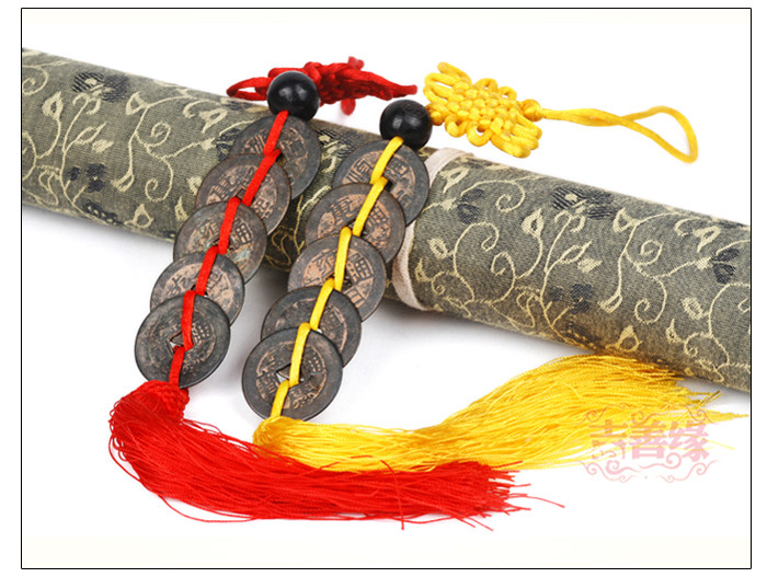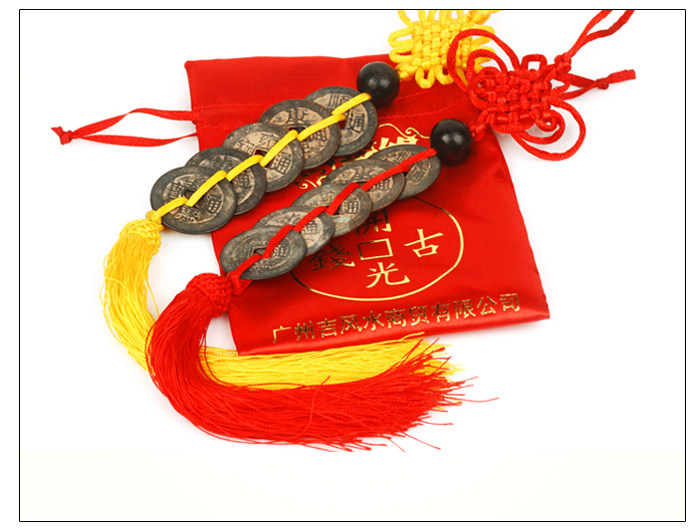 For personal aspect : a string of five emperors of old coins can be sequentially better equipped to carry around a string , can be placed in bags or wallets and handbags hanging straps , can help to make your own luck turns for the better operation while also evil spirits effect. On the body can be evil , evil spirits will not be harassed , or Lee is a packet containing , or wear around your neck with a rope , can increase their luck , like to use God's colors are available in red color .