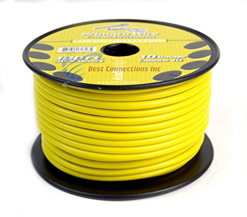 Studio : Audiopipe / Best Connections Publisher : Audiopipe / Best Connections Product Description ***We are in the process of transitioning remote wires to our own brand. You may receive wires with the Best Connections label. ***Please send us a message regarding the colors of your choice.If no message is received at the time of payment, we will randomly select the colors for you.10 Gauge, 100' FT Remote Wire8 Rolls, 100' FT Each RollSingle Conductor, Remote, Turn on, Hook Up WireStranded Copper Clad AluminumFlexible, Insulated, and Jacketed in PVCPerfect for Car Audio, Home Theatre, AutomotiveUse this with any 12 Volt or home projectRated 158 degrees Fahrenheit (6 to 80 Volts)Colors available: Red, Black, Blue, Yellow, Green, White, Brown, Purple, Gray, Pink, OrangeTHIS IS NOT AWG AMERICAN WIRE GAUGE Click here for more available information regarding wire specs
