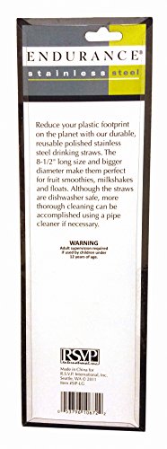 RSVP International Endurance Drink Straw, Large, Silver, Set of 4