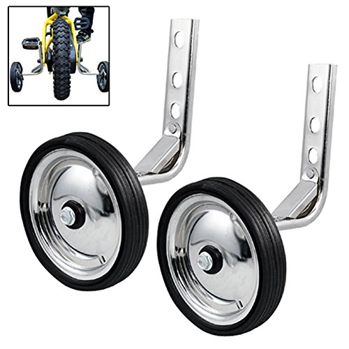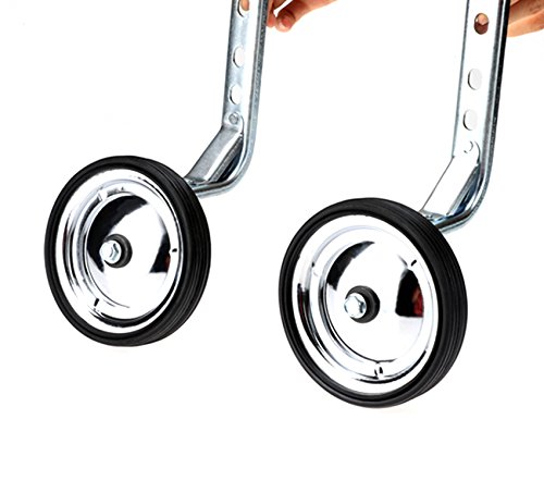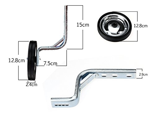 Anfan 12/14/16/18/20Inch Bicycle Training Wheels, Adjustable Universal Kids Bike Stabiliser (US STOCK) ?Designed for young riders, protect your child from tip-overs, topples, spills and falls with Wald training wheels. Steel brackets provide multiple height options for mounting the wheels and brace arms increase stability for better balance. Compatible with most bikes measuring 12-16" with or smaller rear frame Tire mounts directly to the wheel for a secure fit Steel wheels are durable. Specification: Item: Bicycle Training Wheels Material: Metal and Rubber Color: Silver Black Wheel Size: Dia. 12.8 x W2.4 cm/5 x 0.9inch Bracket: L21 x W7.5 x 2.9cm/8.2 x 2.9 x 1.1inch For Wheel Size: 12"/ 14"/ 16"/ 18"/ 20" Style: Universal Feature: Adjustable Department: Children Wheel Quantity: 2 PCS Function: Training, Bike Balance Package Content: One Pair of Bicycle Training Wheels. ?Something you should know before deciding to buy a pair of training wheels for your kids: (1) When young children start to ride a bike, the first thing they need to gain is a sense of balance. (2) Training wheels or stabilizers are an additional wheel or wheels mounted parallel to the rear wheel of a bicycle that assist learners until they have developed a usable sense of balance on the bicycle. (3)Typically they are used in teaching very young children to ride a bike, although versions for adults exist. (4) On the other hand, training wheels needs to be adjusted from time to time according to the learners' skills. Adjusting training wheels correctly, and raising them higher as the child's skill increases, avoids the learners from inhibiting braking if too much weight is taken off the rear wheel by training wheels that are too low. 0 |