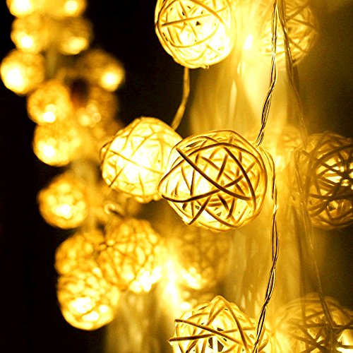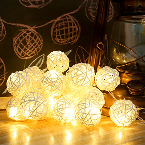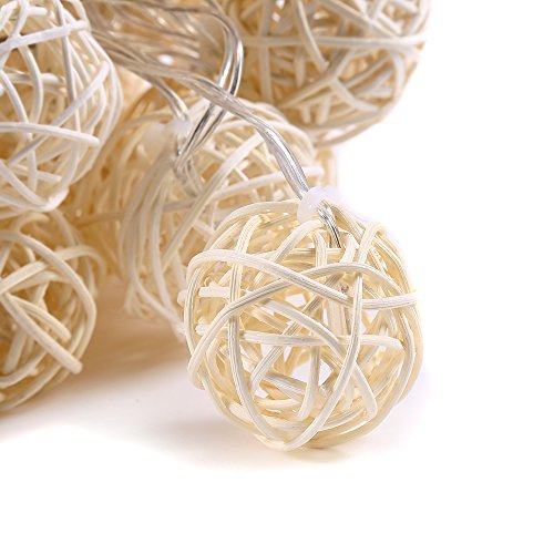 ONEDONE Warm White Rattan Ball Fairy Lights -Decorative LED String Light 20 Leds -Ideal for Wedding, Christmas & Party Decoration (Warm White- Rattan Ball)