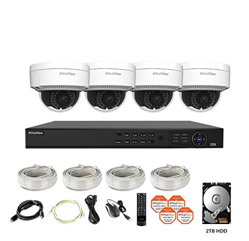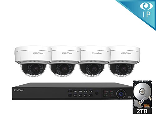 LaView 1080P IP 4 Camera Security System, 8 Channel IP PoE HDMI NVR (Resolution 1080p - 6MP) w/2TB HDD and 4 IP High Resolution Dome 2MP White Surveillance Camera Kit