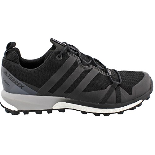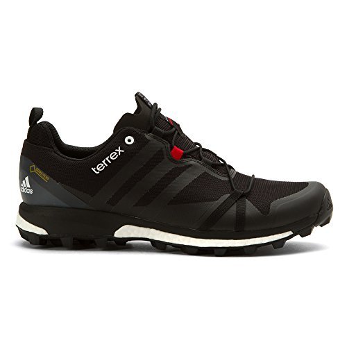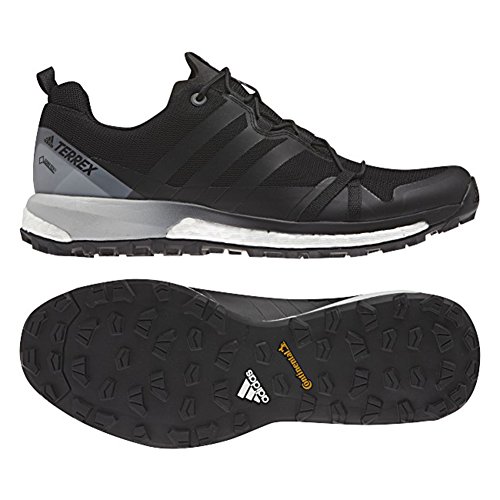 Studio : Adidas Outdoor Publisher : Adidas Outdoor Binding : Shoes Product Description If you wanted to run flat, easy trails then you'd go to the park and run those smooth gravel paths, but you'd rather run in the mountains where the trails are steep, technical, and demand an aggressive shoe like the Adidas Men's Terrex Agravic GTX Shoe. Designed with high-intensity, technical trails in mind, the Agravic has an aggressive Continental rubber sole with a tread pattern cribbed from mountain bike tires. A cushy layer of EVA protects against the rocks and logs you'll encounter out on your run, while Adidas' Boost technology helps keep some extra bounce in your step during those high-mileage leg grinders. The Agravic's upper was built to put the handle on rugged terrain thanks to a combination of textile fabric and welded overlays to help add support. And since trails are rarely perfectly dry and there's almost always a chance of rain, Adidas gave the Agravic a Gore-Tex membrane to keep your feet and socks dry when you inevitably encounter moisture out there. 0
