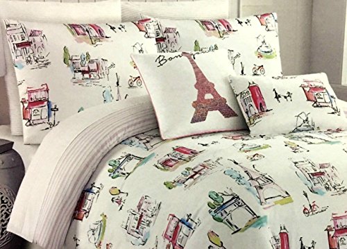 Cynthia Rowley Paris in Color 3-Piece Full/Queen REVERSIBLE Duvet Cover Set | Features Paris Street Scenes Including Eiffel Tower