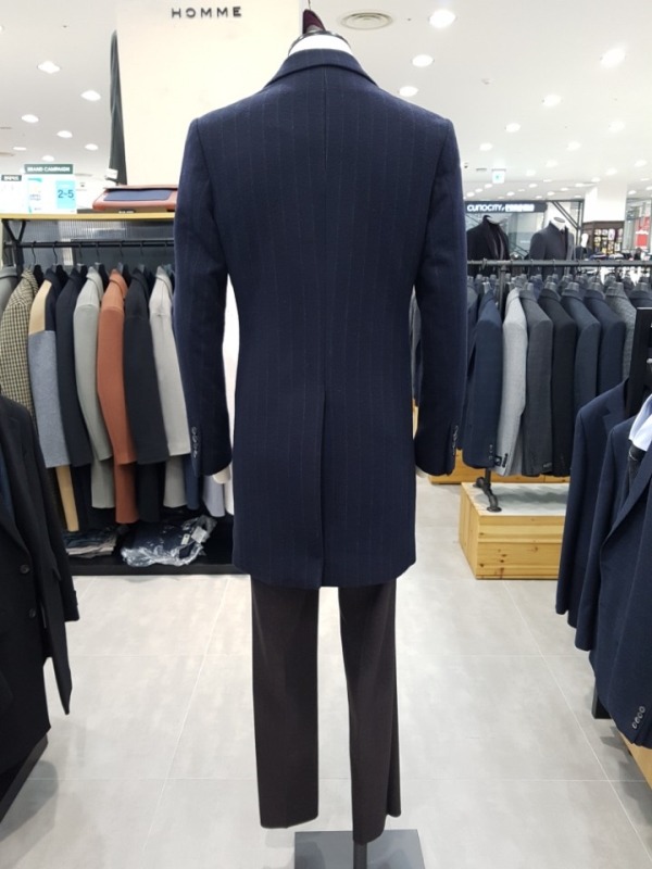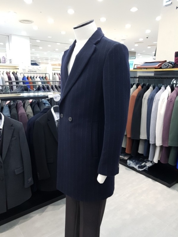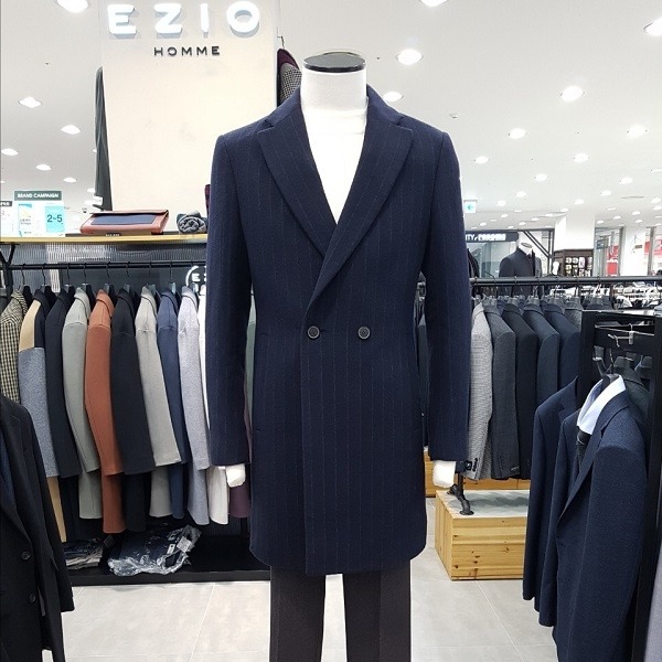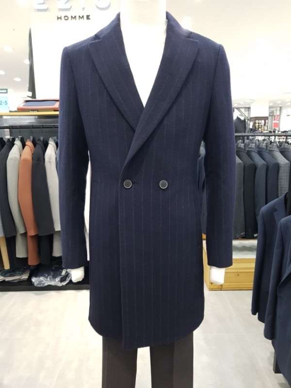 핀스트라이프 패턴으로, 밋밋하지않으면서도 고급스러움을 자랑하는 모직 코트.