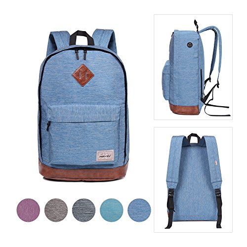 -. Feature : Material:85%Canvas+15%PU.Made of high-density,durable,water-resistant Oxford fabric,features strongest metal SBS zippers with no worry about getting stuck. / Capacity(35L),Roommy(18.5*6.7*14.5inches).Large capacity to hold daily essencials.Outter has one zipper mid-sized pouch for quick access to small items.One back zipper pocket,a port for headphone wires on the top of right. / Make things better organized.Interior features:A mesh zipper compartment in the front, dual slip side pockets for water bottles, 15.6 inches laptop compartment, 11 inches zipper sleeve tablet or notes, organizers for charger and mouse, organizer for two pens, small zipper pouch for cards and cash. / Unique design,stylish look with practicality.Anti-slip faux leather bottom stabilizes bag on the ground and protects the bag from dirt and wet.Moreover,it adds to the sense of fashion.Adjustable padded shoulder straps and padded back pannel make it comfortable to carry. / Versatile-minimal, uP.R.Ight and classic design fits your everyday. Perfect size to service at school, work, travel, and anywhere else.You will love it.