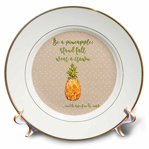 3D Rose Typography Text Watercolor Dots Pineapple Fun Cheeky Motivation Porcelain Plate, 8"