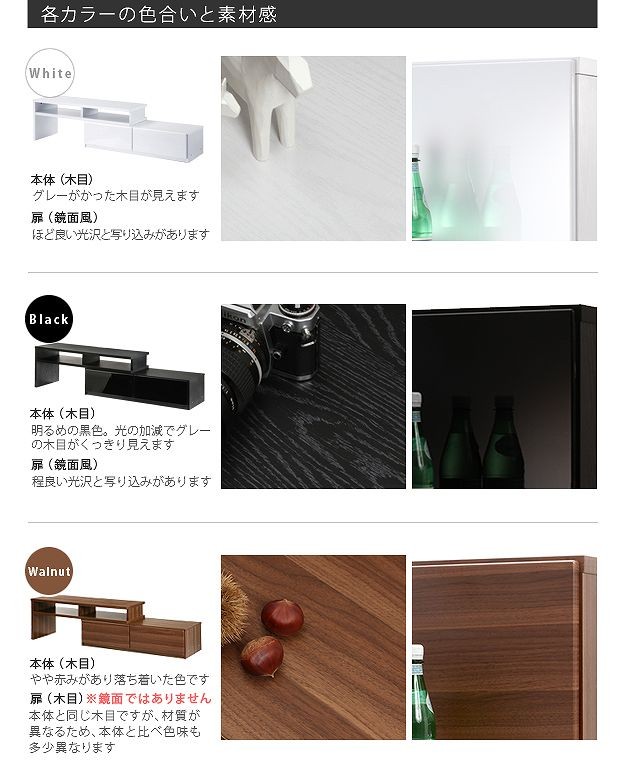 ●カラー:ホワイト(前板鏡面タイプ)・ブラック(前板鏡面タイプ)・ウォールナット