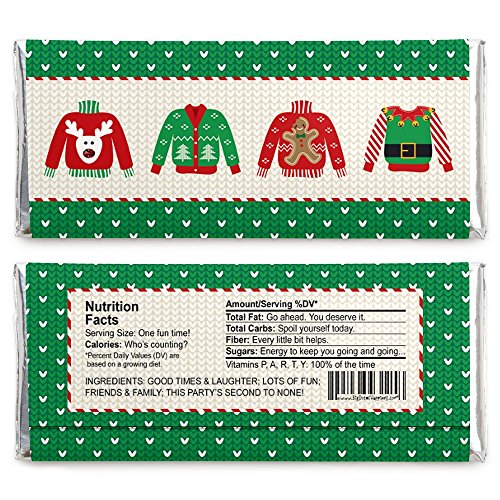 - Ugly Sweater - Candy Bar Wrapper Holiday & Christmas Party Favors - Set of 24
