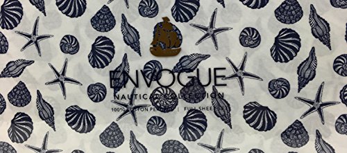 Envogue Nautical Collection 100% Cotton Sheet Set "Shell Stamp" Indigo Blue Seashells Starfish on White (FULL)