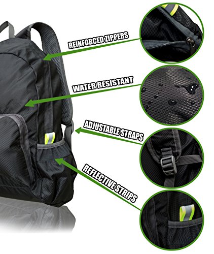-. Feature : FEATURES: Most lightweight (6.5 oz) and spacious (20Liters) travel backpack that is durable, packable, and water resistance. Extra storage pockets and easy to fold into small travel size bag. Full size bag measures 33cm x 15cm x 45cm / PREMIUM QUALITY MATERIAL: Made with Top Rated Tear Resistant Nylon material and Heavy Duty, Reinforced zippers. Water and tear resistant materials makes this daypack perfect for outdoors, traveling, or hiking. / MOST VERSATILE: Forget overweight baggage fees during travel! This ultra light pack zips up into a convenient, small, sandwich sized bundle for a grab and go backpack whatever the circumstance. Suitable for school, college, outside, or traveling, look the best and be prepared for anything. / MOST SPACE: From large and roomy, to tiny and inconspicuous, this backpack has 1 main compartment, 2 side mesh compartments, and 1 front zipped pocket for easy on the go access. / ★ ★ - Get our packable Backpack for 18% off now! Use code YBE778CO at checkout. Great gift for any fitness lover!