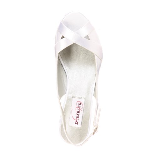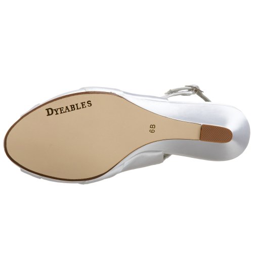 Amazon.com Product Description You'll turn heads as soon as you show up wearing the Coleen sandal from Dyeables. This simple stunner features a delicate criss cross design, a flirty peep toe and slingback, and a wedge heel. You'll also love the option of being able to dye it to match your perfect special occasion ensemble. 0