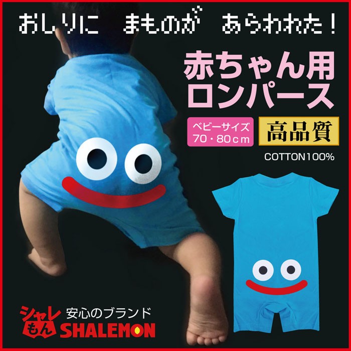 可愛いスマイルを大きくデザインした、おもしろロンパースです。産祝いや、お子様のお誕生日プレゼントに!プレゼント時のインパクトは計り知れません!!しっかりとした生地に耐久性の良いプリントをしております。