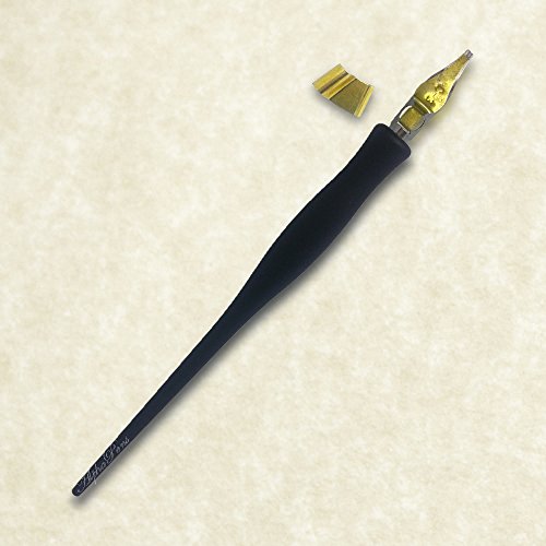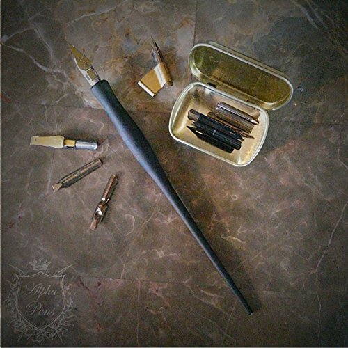Calligraphy Oblique and Straight Pen Nib Holder with Brass Flange Dip Pen by Alpha Pens (Matte Black)
