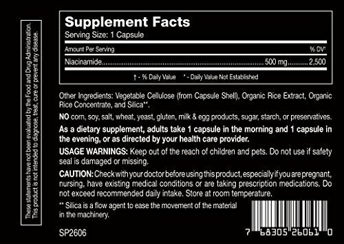 Recommended dosage is 1 capsule twice a day - Nicotinamide 500mg in the Morning and 500mg in the Evening