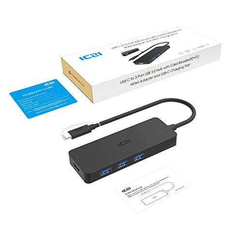 USB C to HDMI Hub, ICZI Type C to HDMI 4K Audio Hub with Card Reader(SD+TF) / 3 USB 3.0 Port Hub / Type C Port Reverse Charging for New MacBook 2016, ChromeBook Pixel, Acer Aspire, ASUS & More - Black