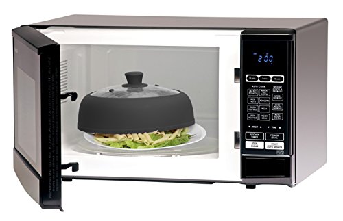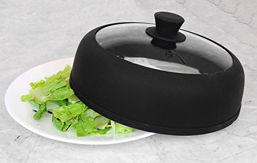 Black Microwave plate cover 10.5 inch for food, Glass Vented Plate COVER 'n COOK -Splatter Lid with Steam Vents | Dishwasher-Safe & BPA-Free