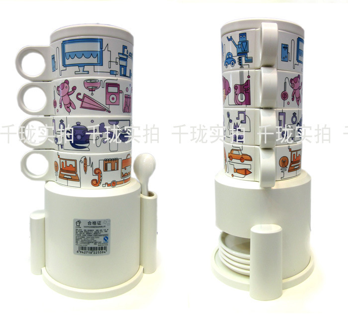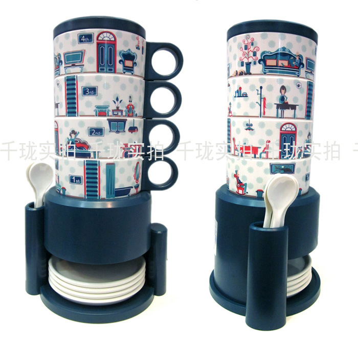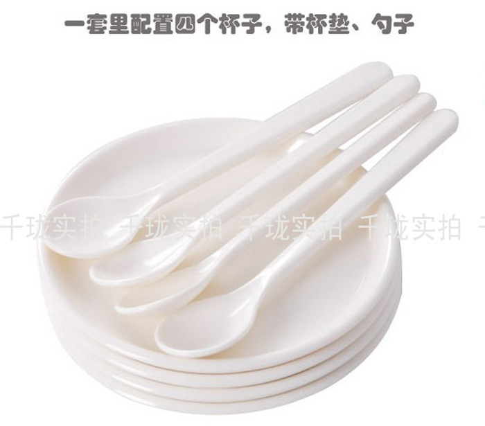 Product material: cup, spoon, a cup handle -100% melamine, cover, base -ABS