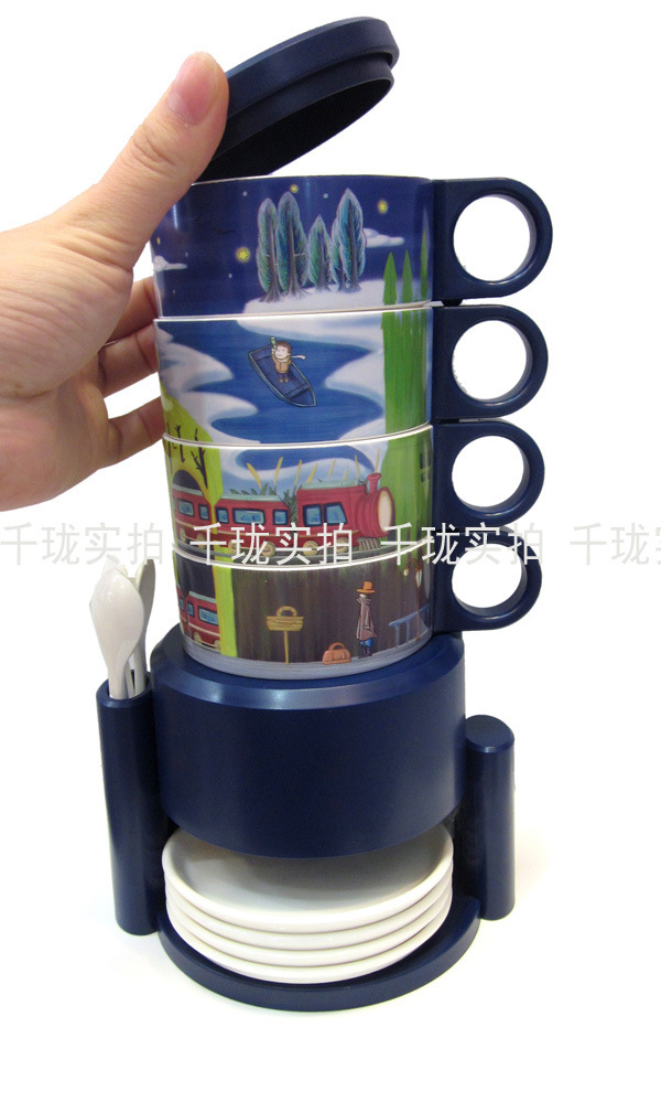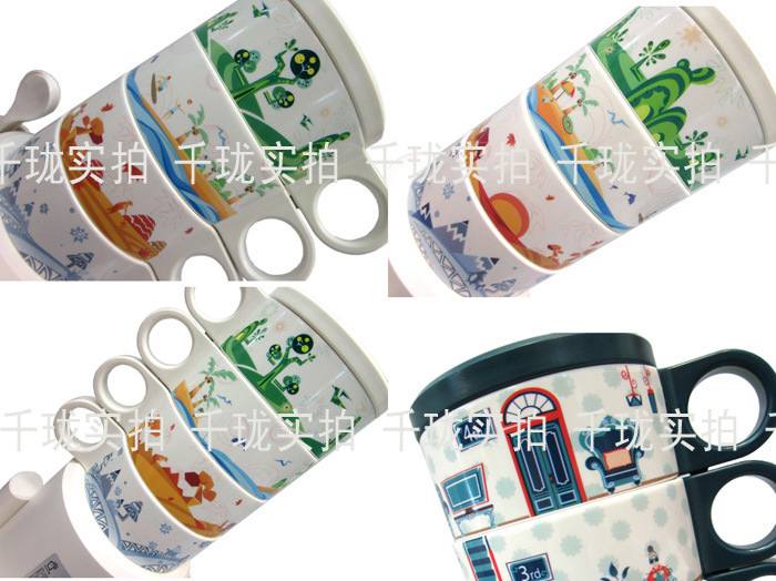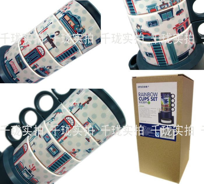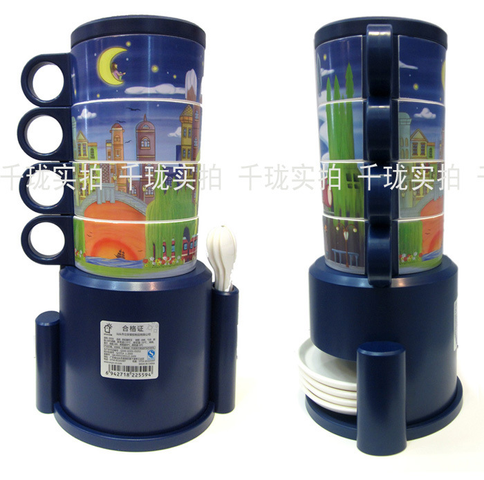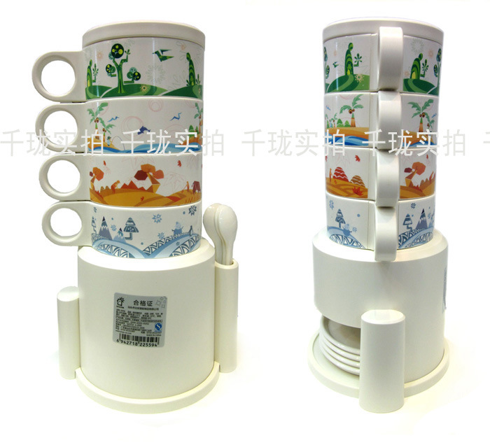 Rainbow cup II this is a plastic products of high temperature resistance, but thefusion of plastic products not fragile easy to clean, and ceramic texture and gloss,more environmentally friendly than plastic, more upscale than ceramic. Can be placed in a microwave oven, 20 degrees -120 degrees. No smell, no deformation,wear resistance, strong enough enough weight, enough bright smooth enough. Is the new choice now young family life daily tableware.