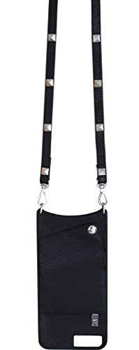 -. Feature : Crossbody black leather pebble case and removable strap - comes in Gold Stud, Silver Stud or Plain Adjustable strap with Gun Metal Hardware / This style fits iPhone 6+ / 7+ / 8+ only. Also available for iPhone 6 / 7 / 8 / Secure snap pocket case to carry and protect credit cards, i.d. or cash. / Standard strap drop length is 25". Adjustable strap version is 23"-27". / Follow us on Instagram for the latest: @get_sainted