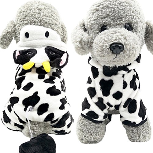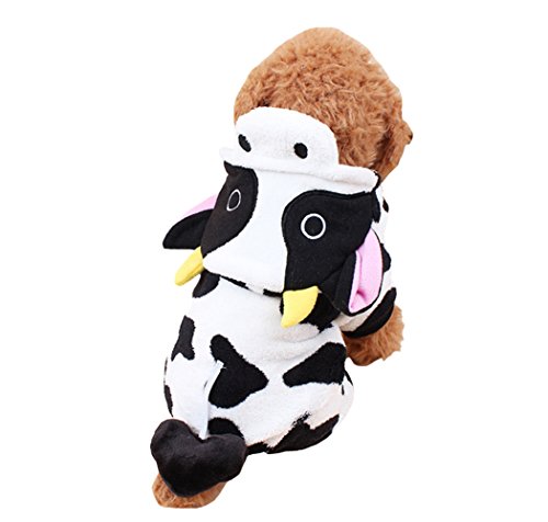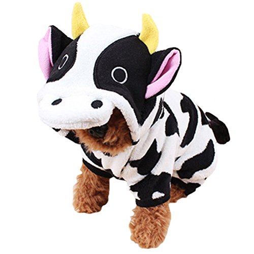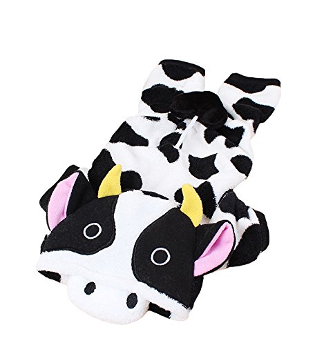 -. Feature : Adorable Cow Design:Tiny cow ear with one pair of big eyes on the hood,makes your pet just look like a real little cow,super cute,lifelike and attractive. / Great Fabrics:Made of fluffy coral velvet,soft,warm,comfy and durable for your beloved pet.It will also give the owner a comfortable experience when they hug thier pets. / Variety Of Size For You To Choose:XS,S,M,L,XL.Five sizes in total,suitable for the most pupies and cats.Pls carefully check the size chart picture and measure your pets before ordering. / When To Wear:Perfect for weekend parties,birthday,festivals and photo shoots to make your pet more attractive.Also a great choice for daily warm or sleepwear on cold winter days. / Convenient and Easy to Wash:No need to worry about clean issues.Thanks to durable fabric and well made process,these apparel can either be washed by hands or machine.Repeatedly washed,not easy to deform.