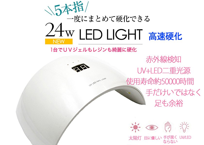 - 1.新LEDチップによりUVジェル、LEDジェル、レジン液など幅広くカバー。