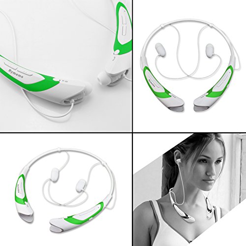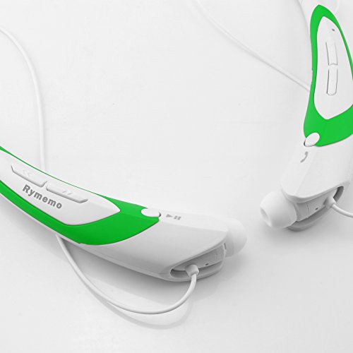 Rymemo 2015 Newest Universal Wireless Bluetooth 4.1 Music Stereo Sports Headset Headphone W/microphone Vibration Neckband Style for Cellphone (Green-white)