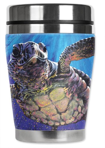 12 Oz Stainless Steel Travel Mug covered with water-proof, neoprene wetsuit material.