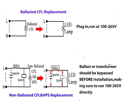 THE BALLAST IN YOUR FIXTURE MUST BE REMOVED OR BYPASSED FOR THESE ADAPTERS TO FUNCTION PROPERLY. CONSULT AN ELECTRICIAN IF YOU ARE UNSURE. DO NOT OPERATE A LED BULB WITH A BALLAST IN THE FIXTURE, DOING SO WILL LIKELY DAMAGE THE BULB.