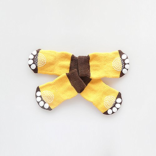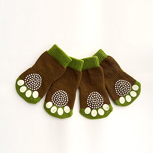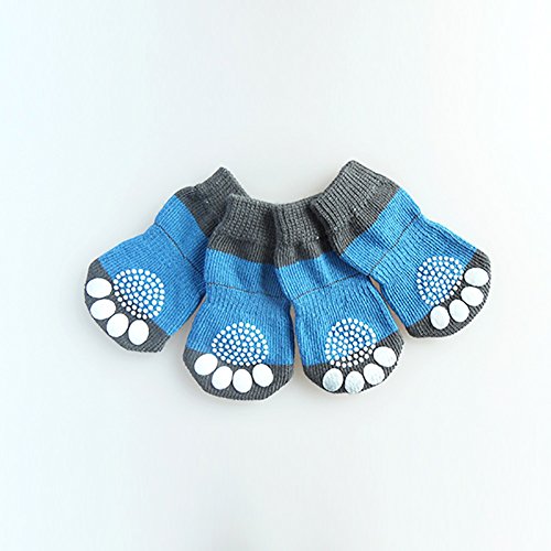 -. Feature : Socks Material: Knit Cotton / Anti-slip design, protect dogs from sliding on hardwood floors, foots Paw Protectors,can wear in outdoor or home. / It's the Asian size will Small than the US size, and it's Fits for Small Dog / Easy to carry and use, keep pet dogs paws clean and thus allowing it to climb up you. / Package Includes: 1 set/4pcs Puppy Pet Dogs Socks