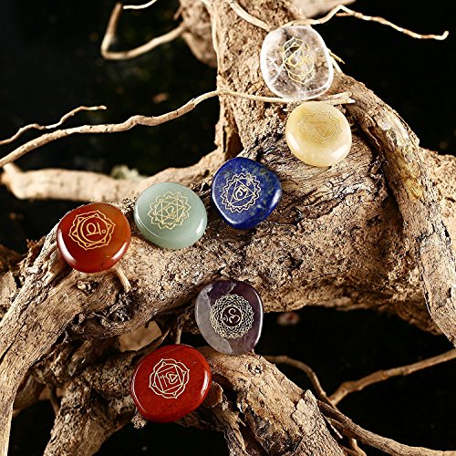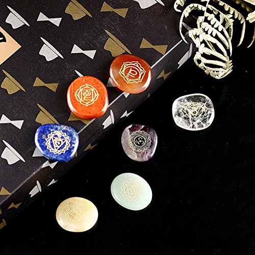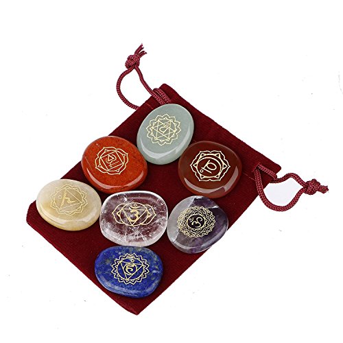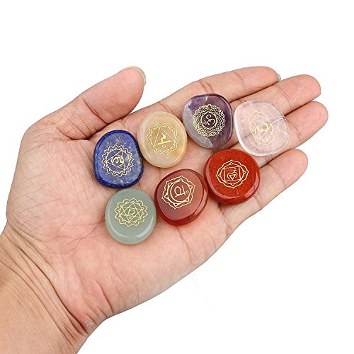 Chakra Stones,Charminer Reiki Healing Crystal With Engraved Chakra Symbols Holistic Balancing Polished Palm Stones Set of 7