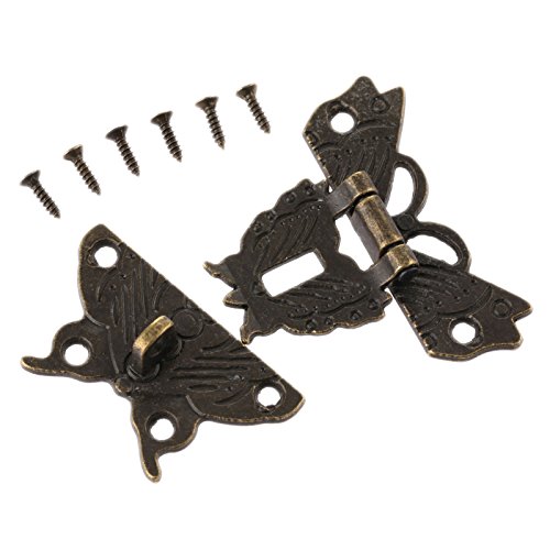 1Pc Antique Butterfly Box Latch Decorative Jewelry Box Hasp Lock Latch With Screw Vintage Hardware For Furniture Drawer 5043Mm 1-