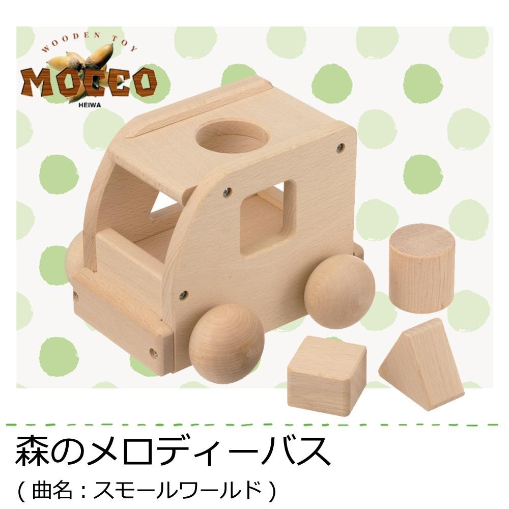 木目の美しい無塗装・無着色のブナ無垢材を使用した車型のおもちゃです。前に押しても、後ろに引いても優しいオルゴールのメロディーが連続して流れます。バスの中には、円柱・立方体・三角体の3個のつみきが入っており、 かたちあわせパズルとしても遊べます。 |