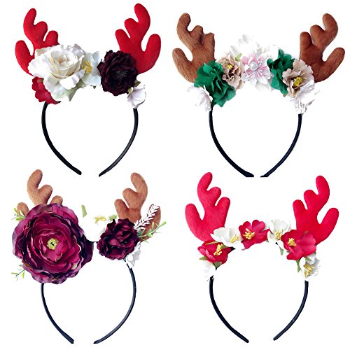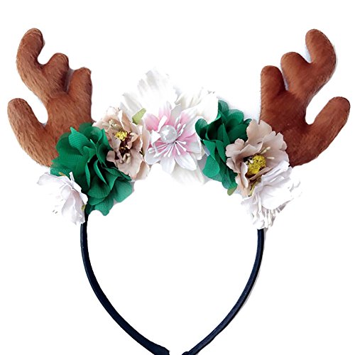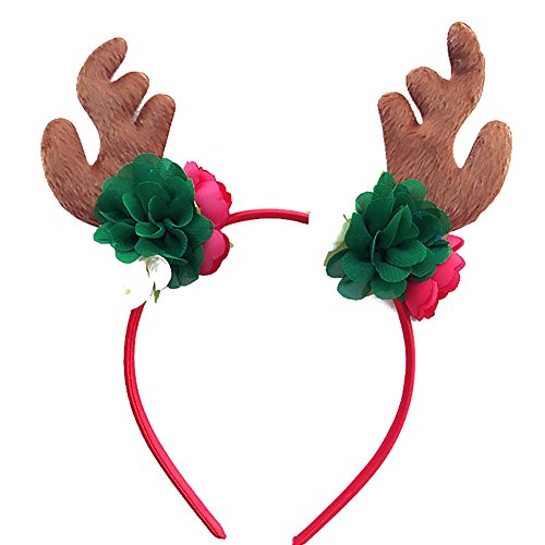 Product Description Feature: Kids Christmas artificial flower Reindeer Hair Hoop Great for Christmas, Festivals, Halloween, party, cosplay, Club, Shopping Mall, etc. Material: Cloth Size: One size fit most Color: As picture shows