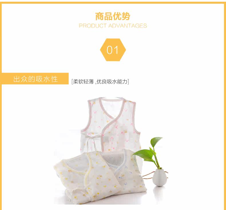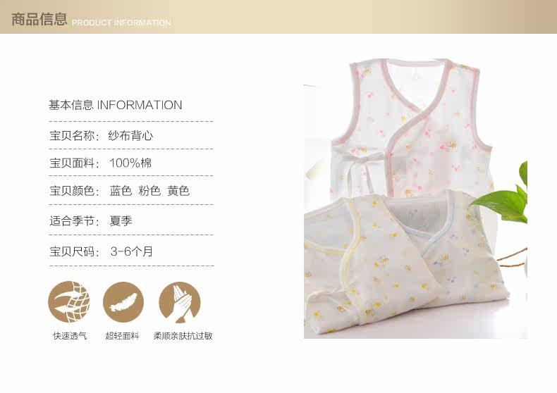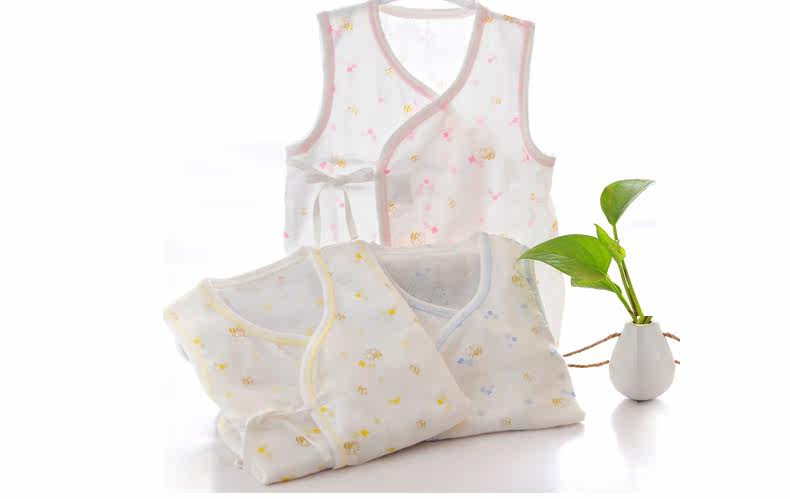 盛哲卡新生儿衣服夏婴儿背心纱布衣服夏无袖纯棉纱布背心宝宝初生