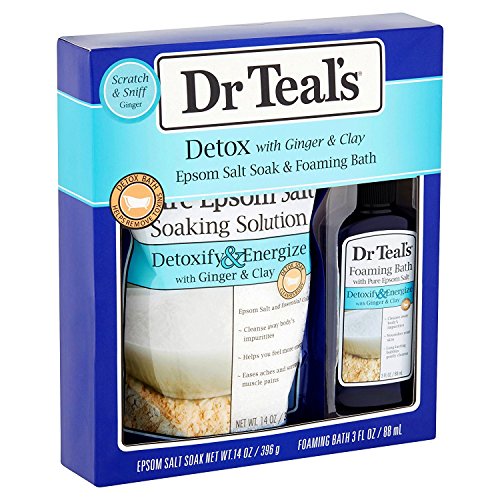 Studio : pdc brands Publisher : pdc brands Binding : Misc. Product Description Relax the day away with the Dr. Teal's Detox with Ginger and Clay Bath Gift Set. It is a two-piece kit that contains Epsom salt soak with essential oils. This gift box is created to exfoliate and detoxify the skin. The foaming bath is designed to naturally remove the body's built-up toxins. This bath salt soak increases energy levels with its soothing qualities. The foaming formula nourishes the skin and senses with long-lasting bubbles that gently cleanse. Both products in this set make an ideal gift for birthdays, holidays or other occasions. 0