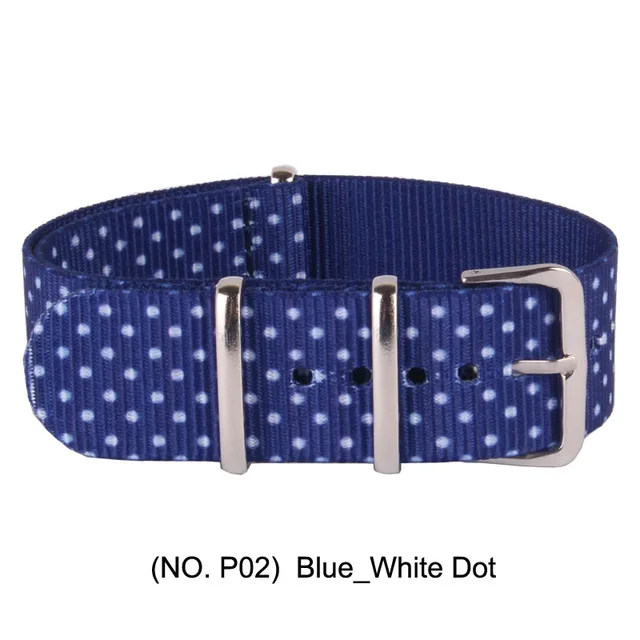 | [해외] 20 미리메터 Cambo 블루 도트 화이트 인쇄 나토 짠 섬유 손목 20 미리메터 나일론 시계 팔찌 스트랩 시계 밴드 버클 남자 여성 |