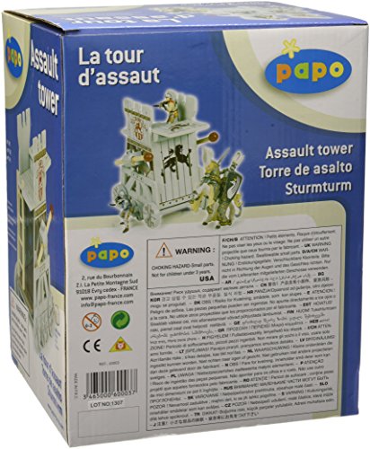 -. Feature : 8 wheeled tower is about 9.5" tall / Wooden panel drops down to reveal knights and archers (sold separately) / Double launcher really works with rubber bands / Part of the Knights Collection