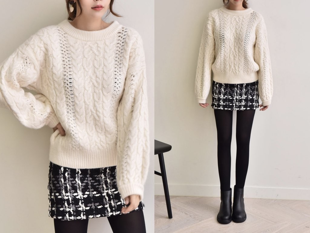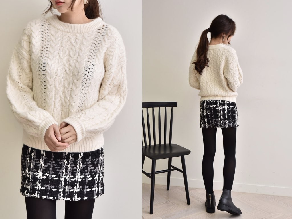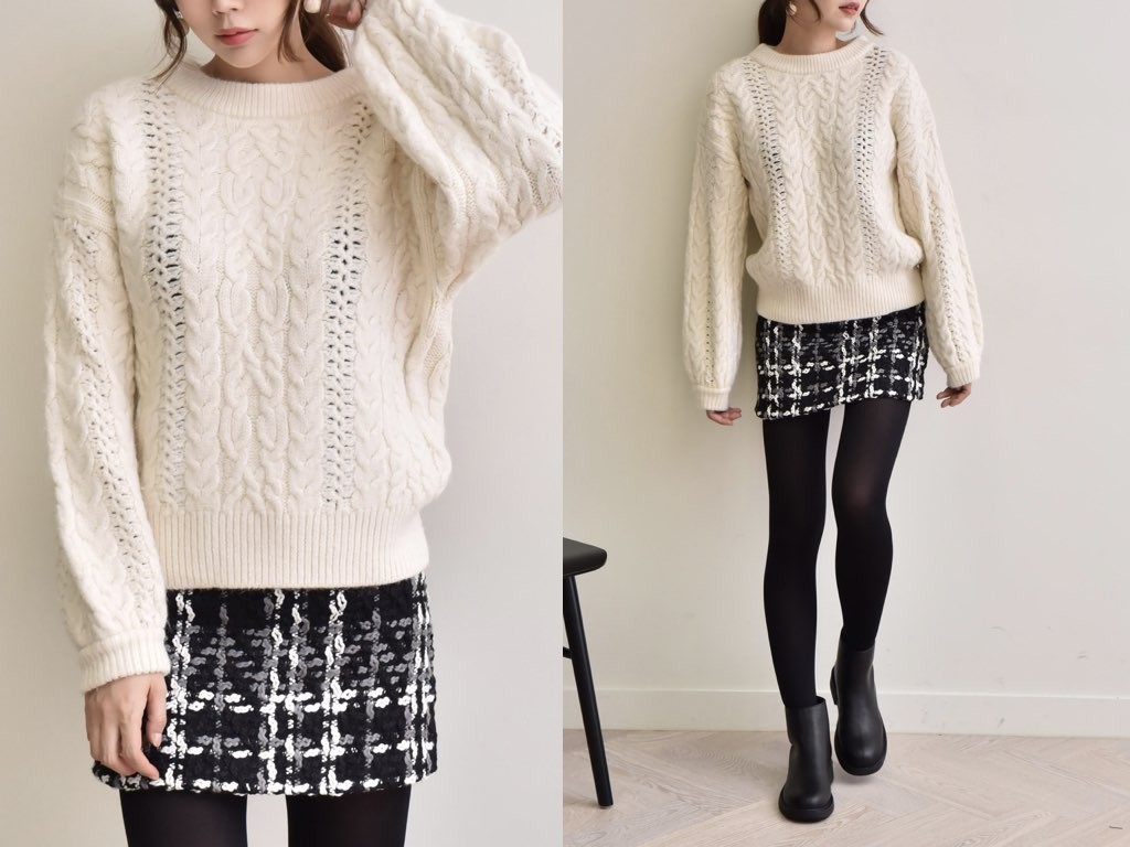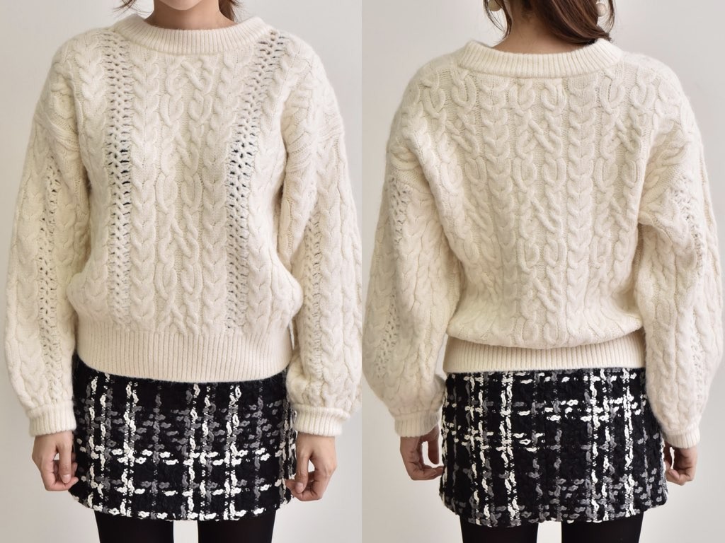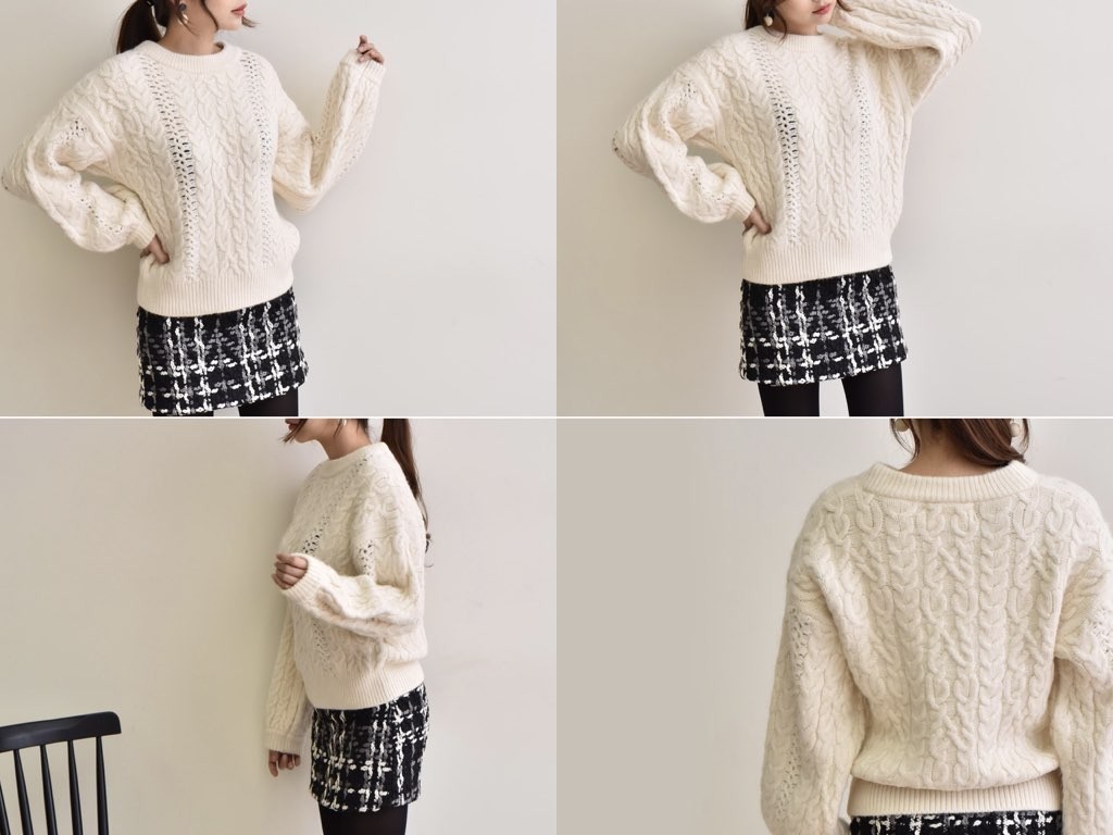 ふんわりとした起毛感のあるニット素材で仕立てた、温かみを感じる一着。細部まで、とても丁寧なつくりとなっています。1.基本情報色:2色展開(アイボリー/ブラウン)サイズ:Free素材:-製造国:korea2.サイズ情報肩幅:57cm身幅(胸断面):49cm腕の長さ:44cm着丈(前):56cm(サイズは計る方法に応じて±2〜3cmの誤差があります。ご了承お願い致します)モデル着用サイズ:F※着用モデル(163cm、体重47kg、足のサイズ24.5cm)3.その他の情報厚み:中間透け感:中間伸縮性:中間裏地:なし洗濯方法:ドライ(クリーニング)[注意事項]お取り寄せ商品は、海外より仕入れるため納品まで約10日前後いただきます。また店舗でも販売しており、在庫切れになる場合もございます。ご了承お願い致します。