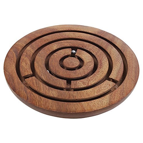 -. Feature : Dimensions: Diameter - 6 inches / Handcrafted out of durable Indian rosewood, comes with 3 steel balls you have to roll to the centre to win. / In the shape of a large round disc, it has deep grooves carved into the surface, for the balls to move about when the toy is rattled, jostled, tipped and shaken. / The classic paper maze you played in school has been given a 3D twist by the skilled artisans of Saharanpur. / Both kids and adults can play this timeless game. A great way to improve your kids spatial awareness.
